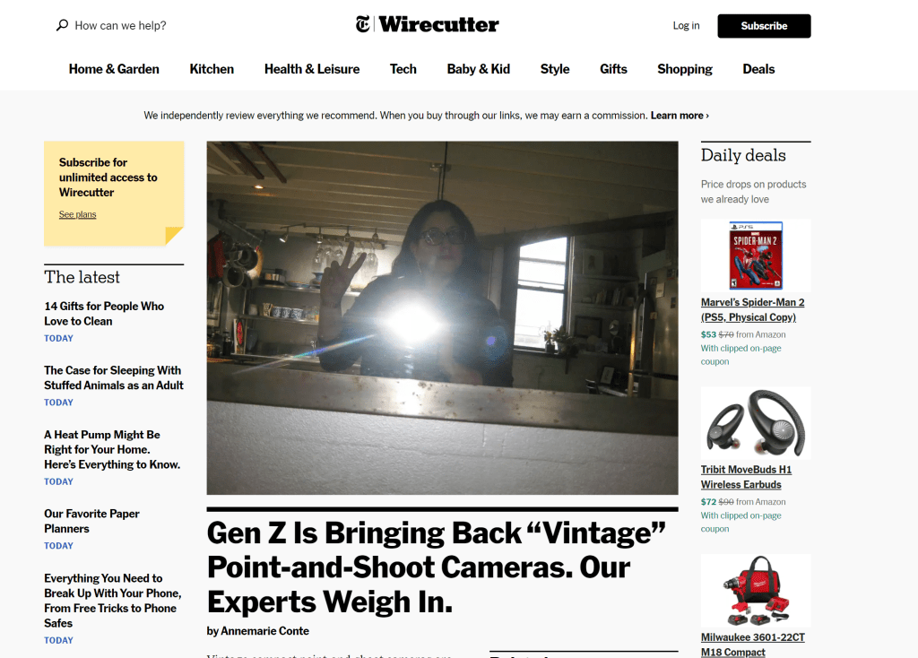 2. The New York Times Wirecutter – The unique angle of this section is high-quality product reviews. Millions of consumers research products before they buy, and the New York Times is one of the most trusted resources.